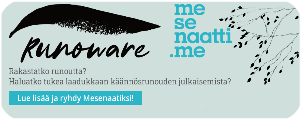 Kustannusliike Parkko laajentaa Tommi Parkon luomaa Runoware-konseptia yhdessä Mesenaatti-joukkorahoituspalvelun kanssa. Kirjojen ystävät voivat jatkossa tukea käännösrunoutta liittymällä kuukausilahjoittajiksi valitsemallaan summalla ...